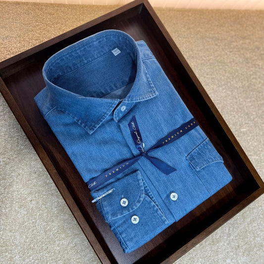 Long Sleeve Plain Denim Shirt 6826